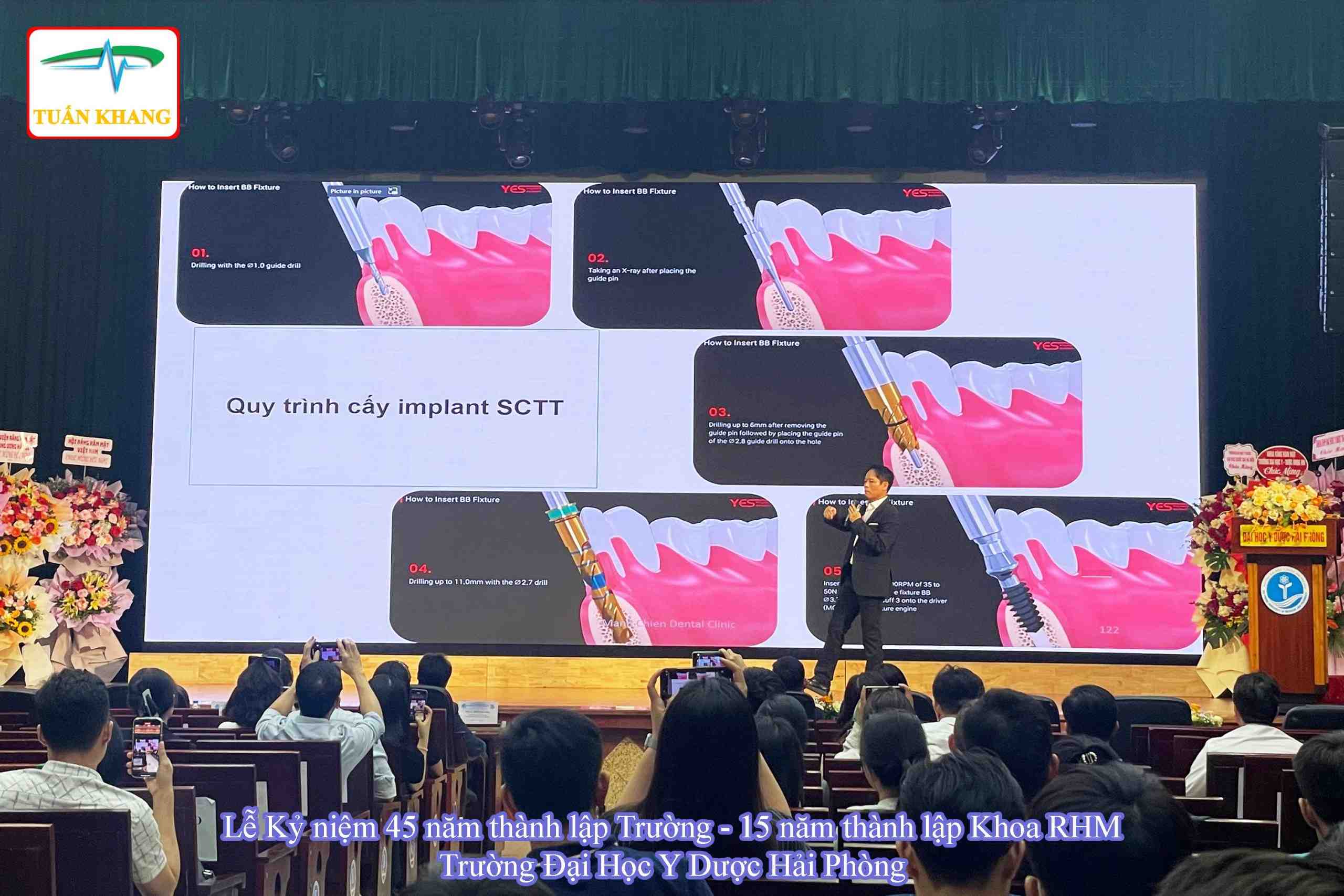 🌟 Cùng với Khu trưng bày Gian hàng Vàng, TuanKhang Medical cũng đóng góp cho sự kiện trường bài báo cáo khoa học với chủ đề “Implant Xâm lấn tối thiểu” của Ths.Bs. Nguyễn Mạnh Chiến về có thể giúp cho các sinh viên, giảng viên Trường Đại học Y Dược Hải Phòng tiếp cận với dòng Implant xu hướng mới để xử lý các vấn đề về xương khó.