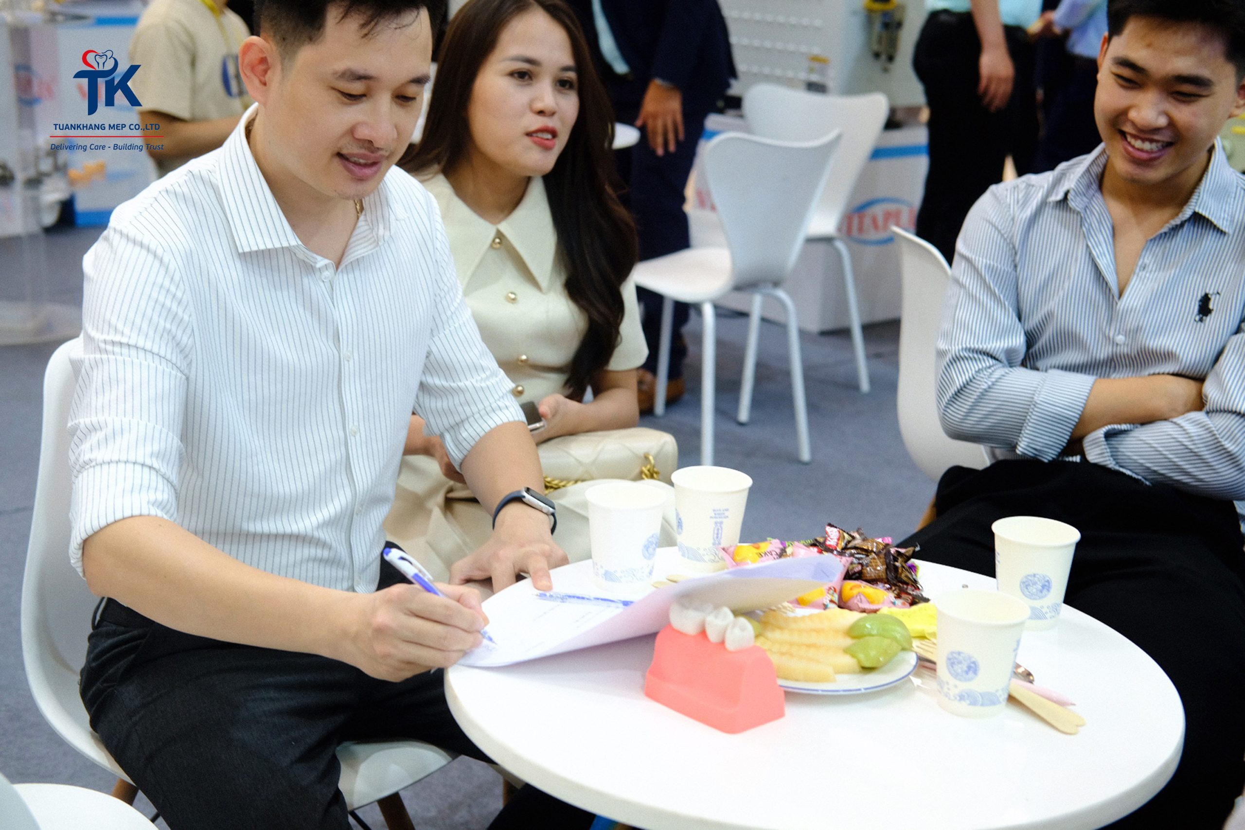 Trong 3 ngày VIDEC diễn ra công ty chúng tôi đã rất vinh dự đón tiếp rất nhiều Quý Bác Sĩ, Quý Đối Tác và Quý Khách Hàng đến thăm quan, chia sẻ chuyên môn, tìm hiểu sản phẩm mới và ký kết nhiều hợp đồng hợp tác giữa hai bên. Qua đây các Bs Chuyên gia trong ngành cũng có các ý kiến góp ý về chất lượng sản phẩm cũng như dịch vụ để giúp chúng tôi ngày càng hoàn thiện hơn để phục vụ tốt hơn nữa, mang lại nhiều giá trị hơn nữa và đóng góp cho ngành Y tế nói chung và nha khoa Việt Nam nói riêng ngày càng phát triển.